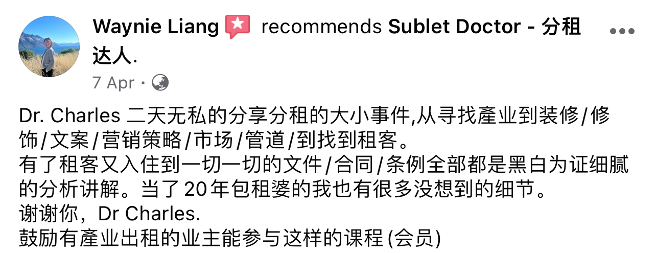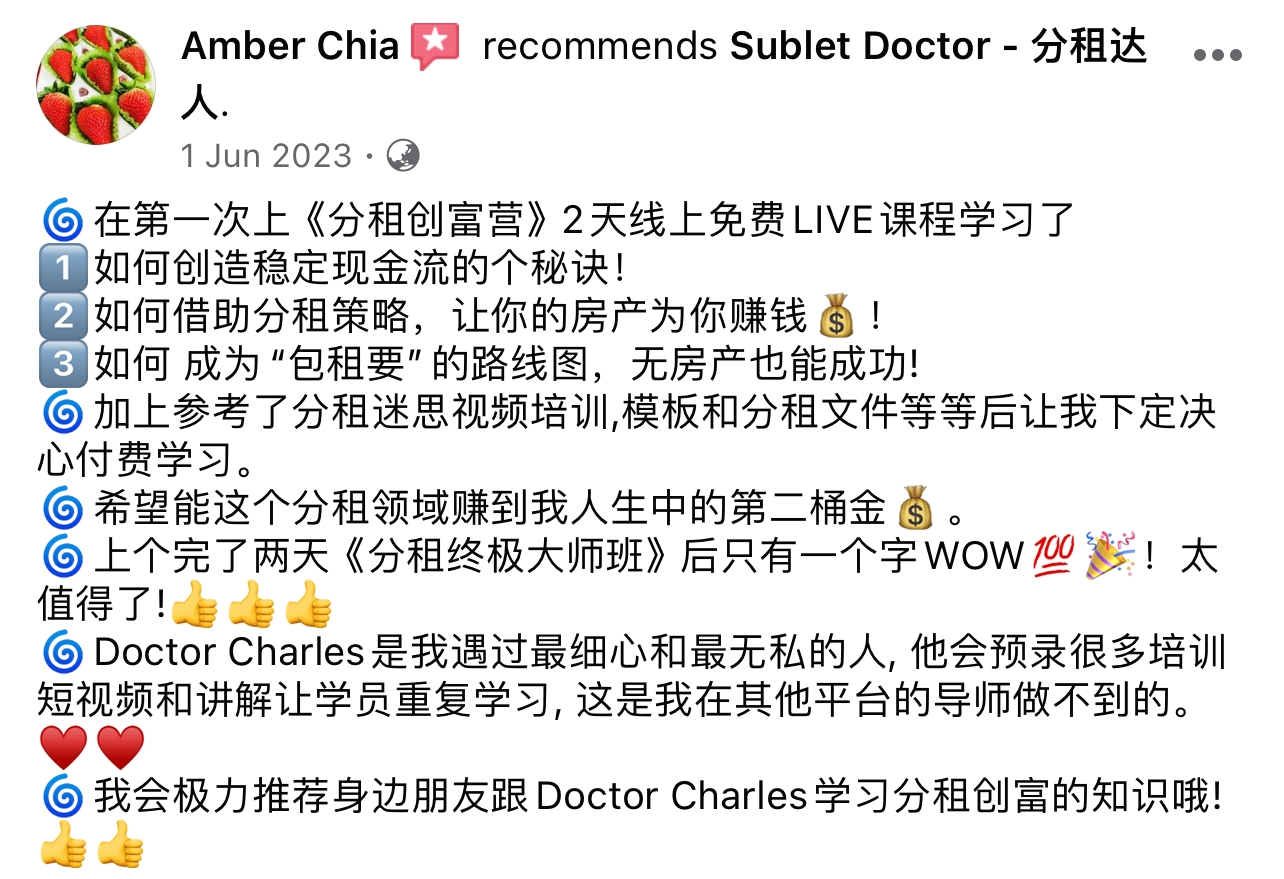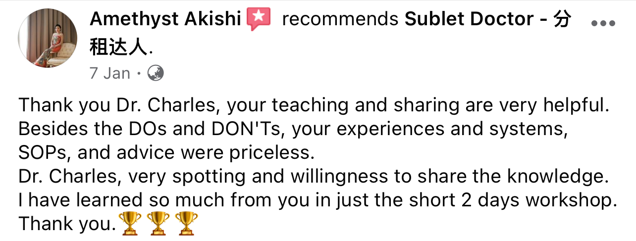 两天课程后,跟着我的Formula,你也能做个赚钱的包租公/包租婆!